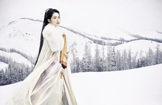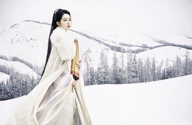 只是站在雪地里,就像从古风画上走下来的人,连眼神里都像有故事。